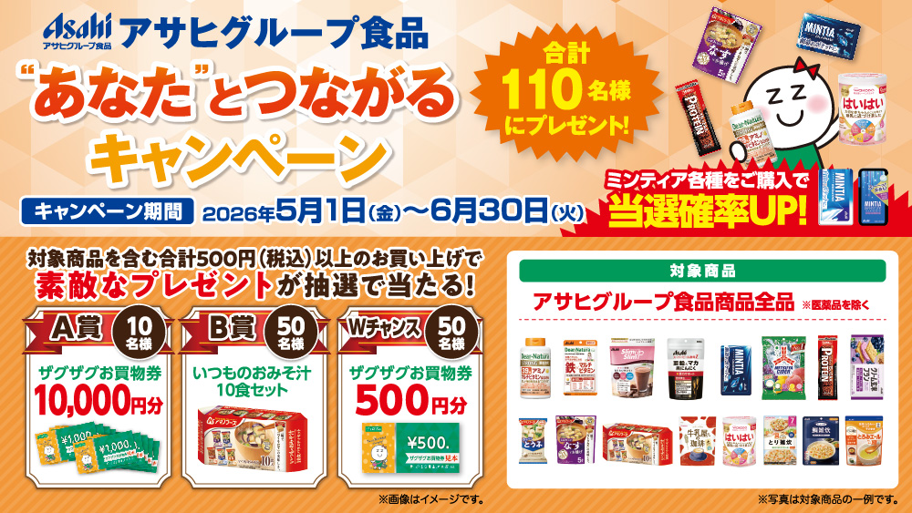 - 個人情報取扱いについて:ご記入いただいた個人情報は、株式会社ザグザグが賞品の発送等本キャンペーンの目的にのみ利用させていただきます。ご本人の同意なく外部機関に対してそれら情報の交換・売買・共有を行うことはありません。ただし、株式会社ザグザグは、業務代行業者へ個人情報取扱業務を委託する場合があり、業務代行業者は個人情報を委託内容の範囲において適切に取り扱います。