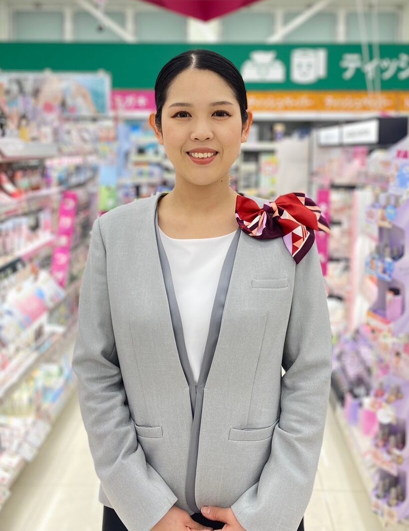 この仕事で嬉しいのは、接客したお客様が私を指名して再来店してくださることです。日々、お客様の美容のお悩みやライフスタイルを伺い、できる限りの提案をしています。そんな中、「小野さんに紹介してもらった化粧品、とっても良かったわ!」と笑顔で再来店されることがあります。異動した際も、「小野さんのアドバイスが聞きたいから」と異動先の店舗まで来てくださる方もいらっしゃいます。ドラッグストアの商品はどこでも買えますが、「私」の接客を求めて来店してくださる方が増えることに、とても感慨深くやりがいを感じています。