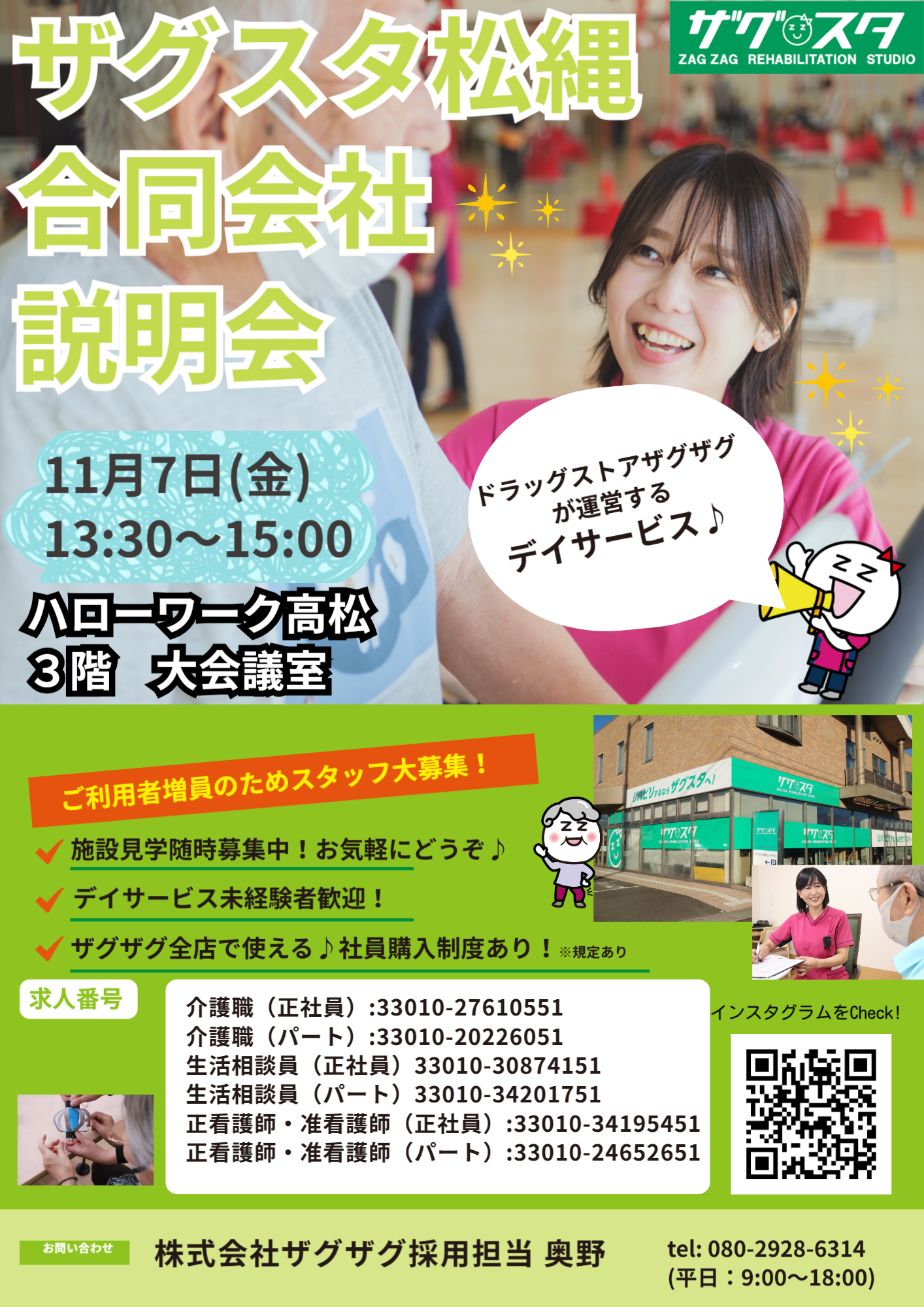 11月7日ハローワーク高松・合同会社説明会に参加します♪
