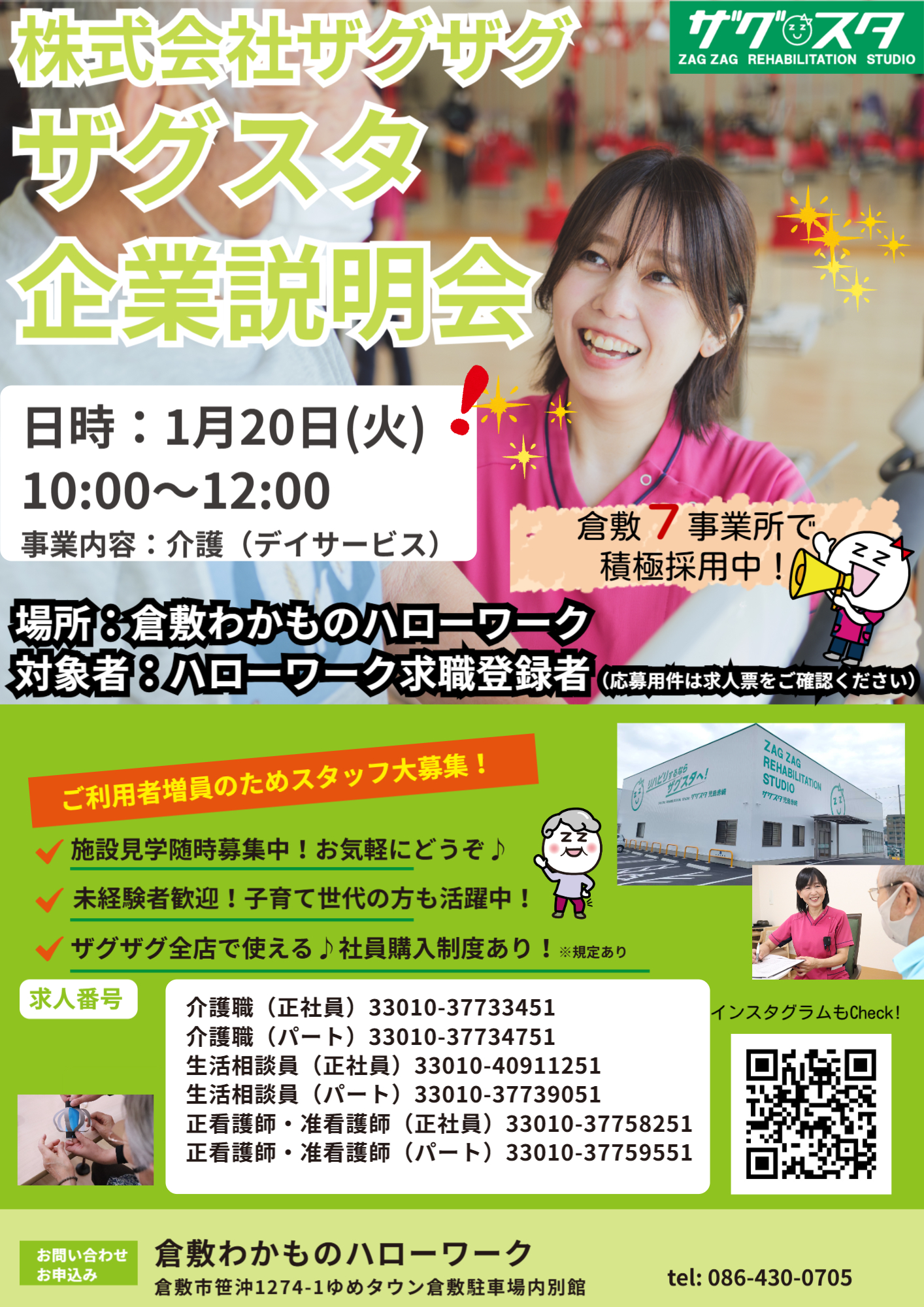 【倉敷】1月20日(火)倉敷わかものハローワークで会社説明会開催♪