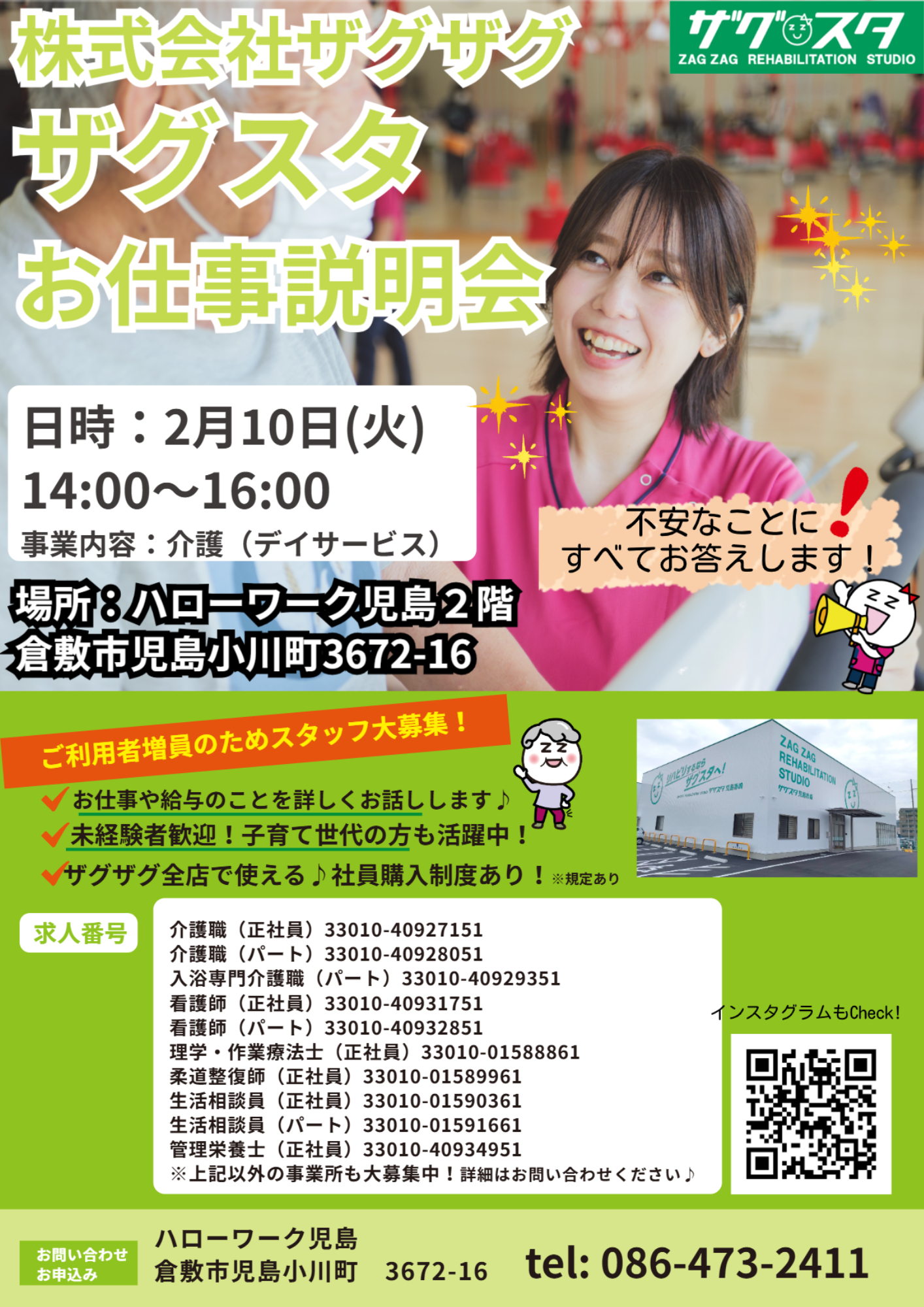 【児島】2月10日(火)ハローワーク児島で会社説明会開催♪